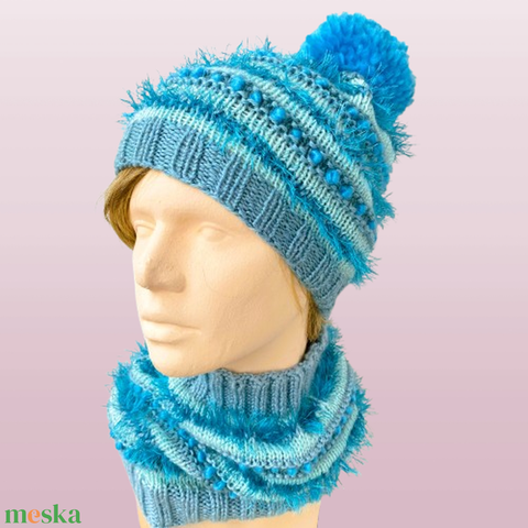 Téli tavacska - kézzel kötött női sapka/sál szett