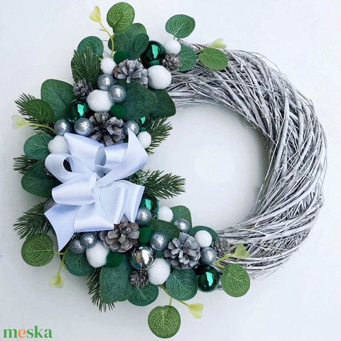 - Anyaga: koszorú alap, gömbök, műfenyő