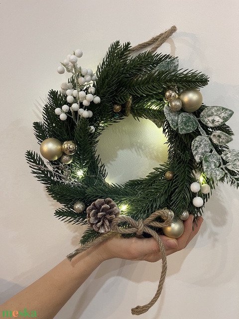 Nagy méretű vintage örökvirág karácsonyi ajtódísz, kopogtató