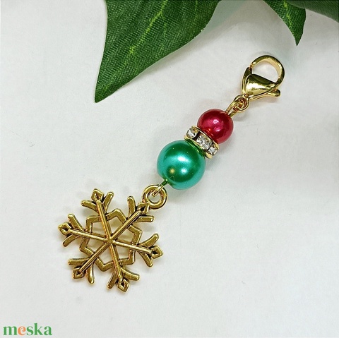 Arany színű hópehely medálos kulcstartó, táskadísz