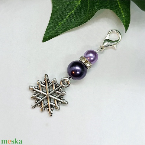 Ezüst színű hópehely medálos kulcstartó, táskadísz