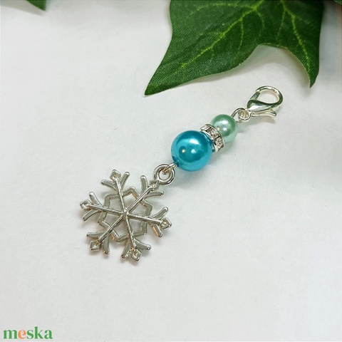 Ezüst színű hópehely medálos kulcstartó, táskadísz