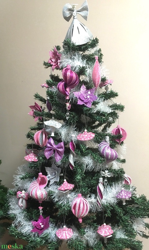 Csillogó karácsonyfadíszek glitteres dekorgumiból lányos összeállításban