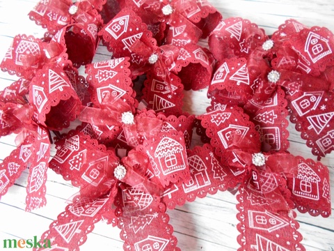10 db-os bordó alapon fehér mézeskalács házikó-fenyő mintás masni