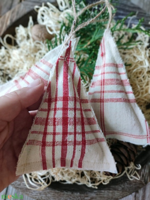 Piros kockás fenyőfa dekor karácsonyfadísz
