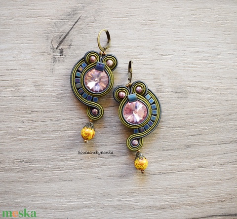 - Anyaga: sújtás zsinór, swarovszki kristály, japán kása, cseh csiszolt gyöngy, ragasztó, cérna, nikkel mentes fémszerelék, cseh kaboson