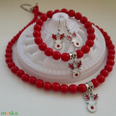 Szarvasos karácsonyi ékszerszett - nyaklánc + karkötő + fülbevaló