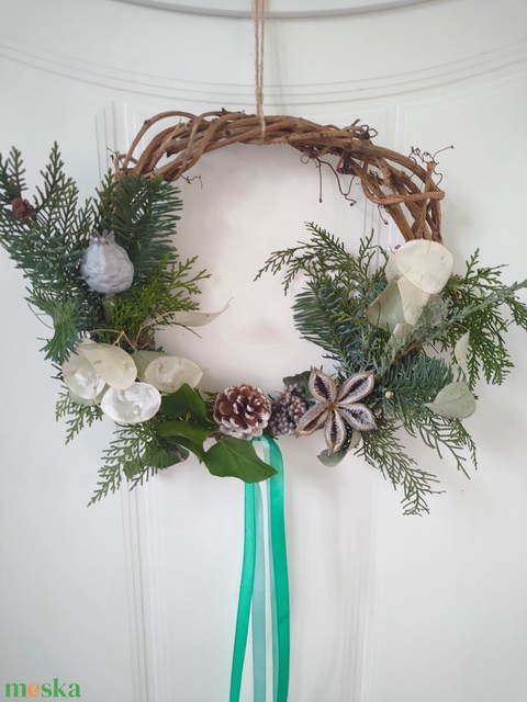 Adventi ajtódísz élő növényekkel, termésekkel - karácsonyi kopogtató szárított növények felhasználásával