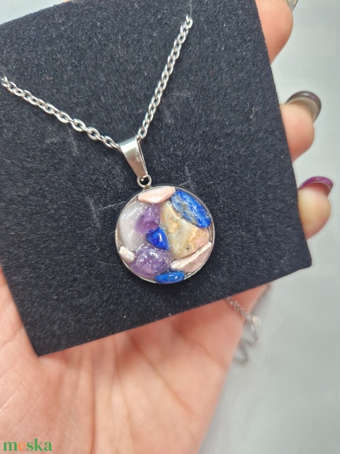 Ásványos nyaklánc nemesacéllal +ajándék jesmonite ékszertartó