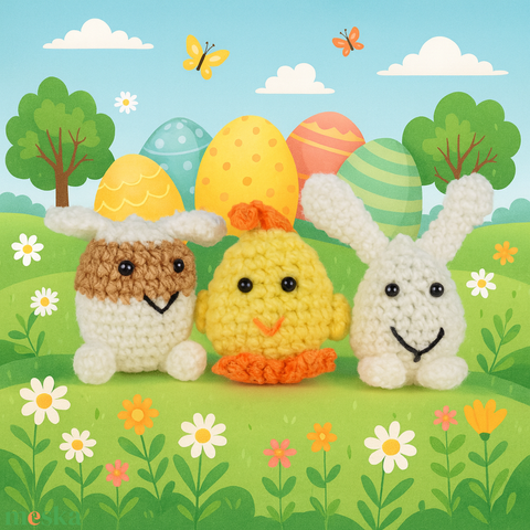 aranyos horgolt húsvéti kollekció - tojásnyuszi, tojáscsibe és tojásbari