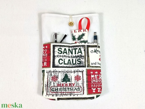 Karácsonyi mintás zsebes könyvtartó tok + ajándék könyvjelző