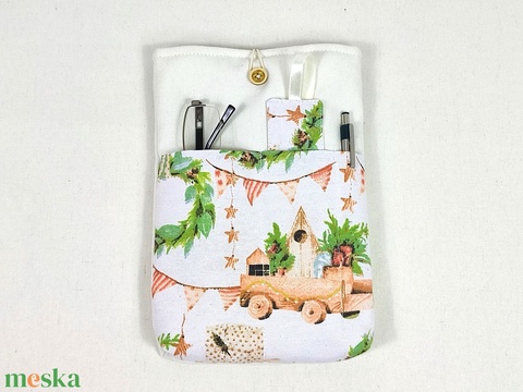 Karácsonyi mintás zsebes könyvtartó tok + ajándék könyvjelző