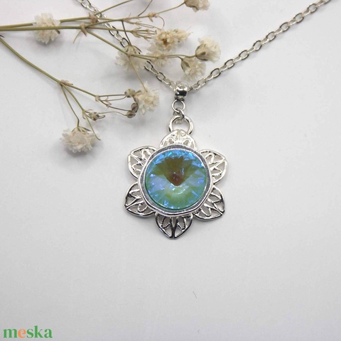 Swarovski kristályos nyaklánc, egyedi készítésú, virág formájú medállal, választható színű kristállyal