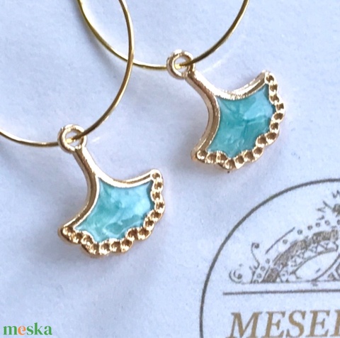 Ginkgo falevél karika fülbevalón, türkiz színben - Mesedoboz