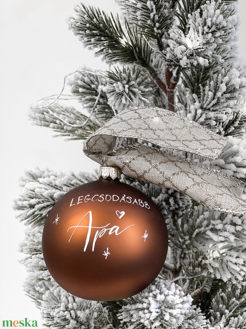Kézzel írt karácsonyi matt bronz barna üveggömb - Feliratos - Egyedi - Névre szóló