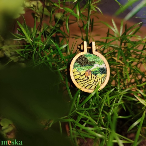 vietnámi rizsföldek gyűrű ~ mini hímzett tájkép hímzőrámában