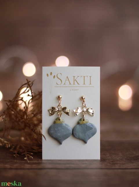 Szürke karácsonyfadísz függő fülbevaló, függő fülbevaló, karácsonyi fülbevaló