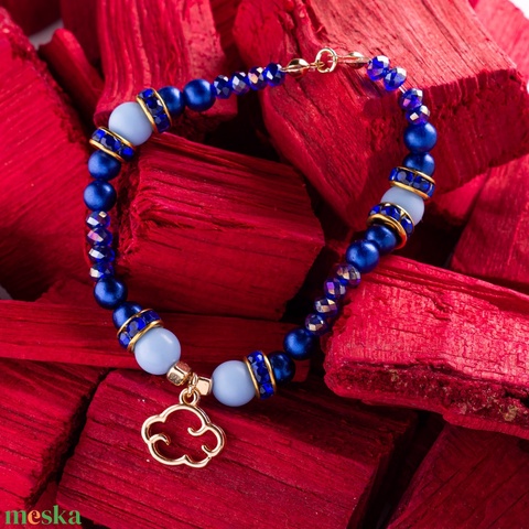 Bohókás Karkötő Mini Díszítésekkel - királykék gyöngyökkel, felhő charmmal