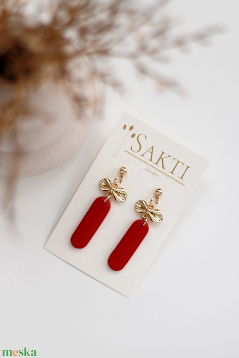 Piros masnis fülbevaló, függő fülbevaló, fülbevaló, karácsonyi fülbevaló, ünnepi fülbevaló
