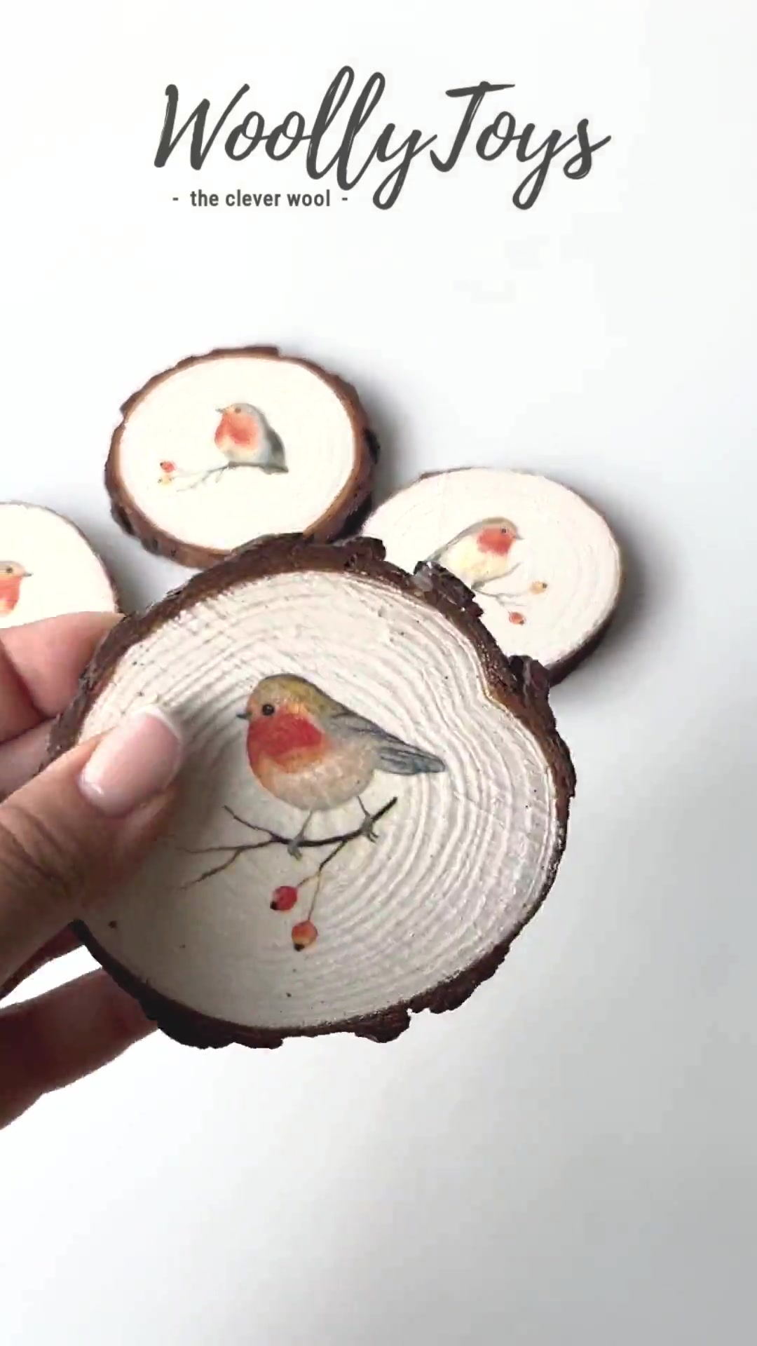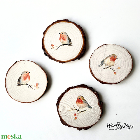 Vörösbegy fa poháralátét, dekoráció 4 darabos ADVENTI KOLLEKCIÓ 2025