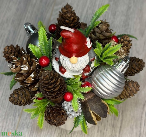 - Anyaga: kerámia kaspó, gyertya, díszgömb, toboz