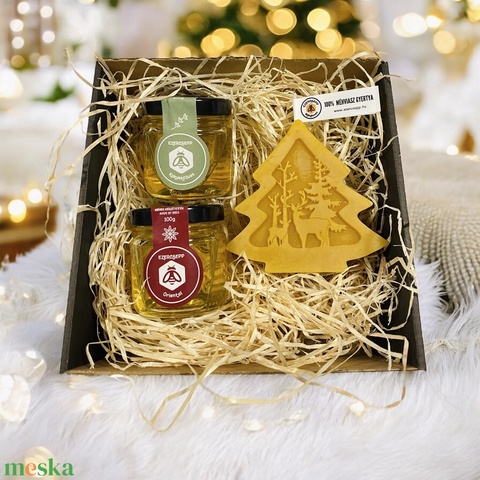 Keleti fűszeres és kakukkfüves méz ajándékcsomag választható gyertyával