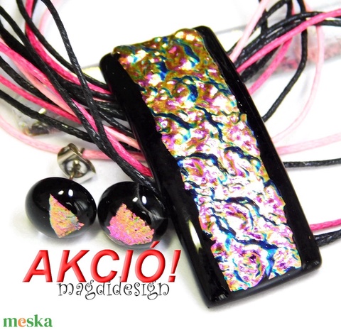 Fekete-rózsa dichrroic üvegékszer szett nyaklánc pötty fülbevaló