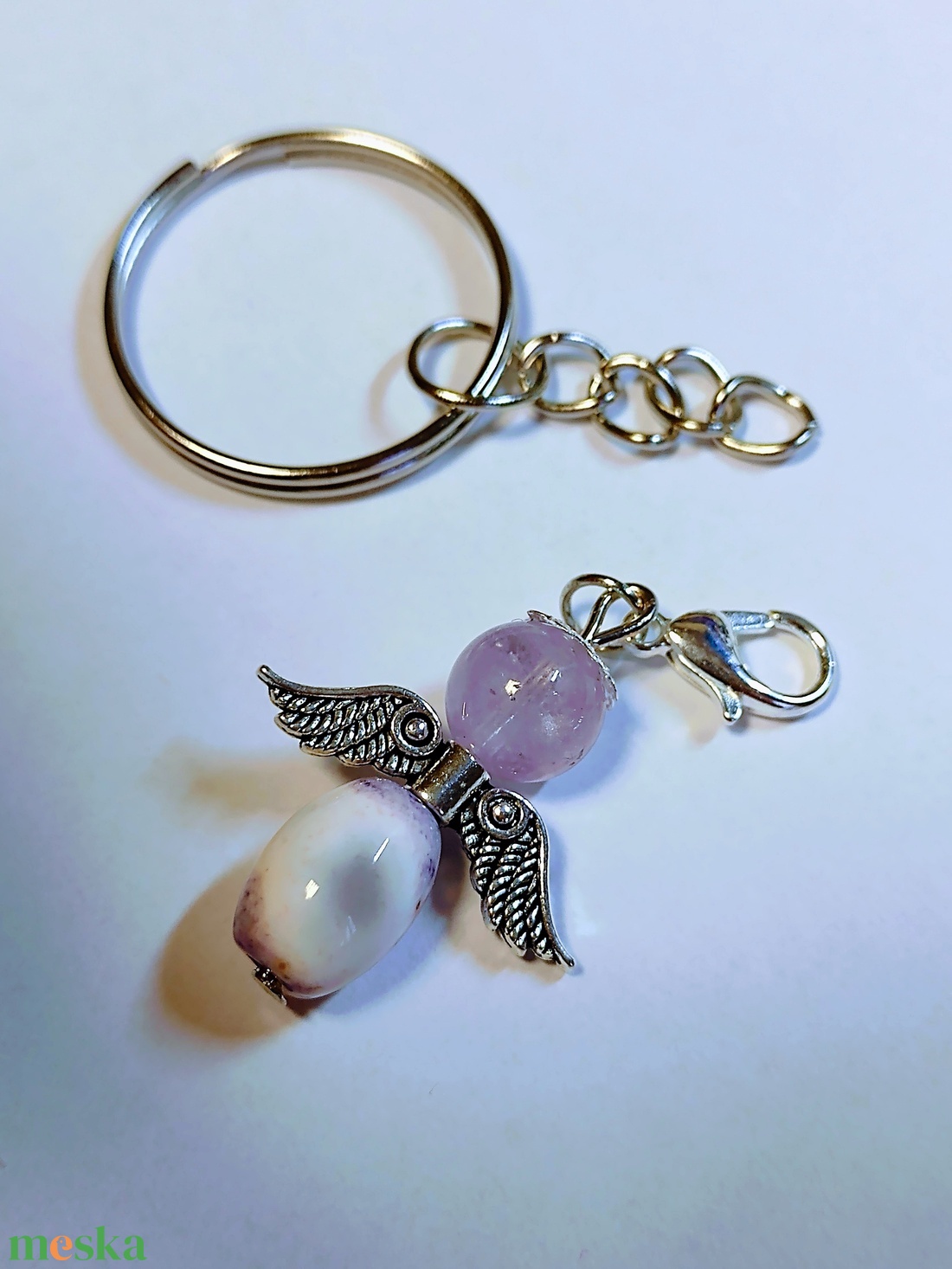 ékszerlánc, delfinkapocs, achát, angyalszárny, gyöngykupak, szerelőpálca, szerelőkarika, karika kulcstartó, ametiszt