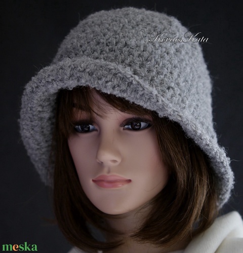 ALPAKA FLAPPER - exkluzív horgolt alpaka-buklé gyapjú kalap / szürke