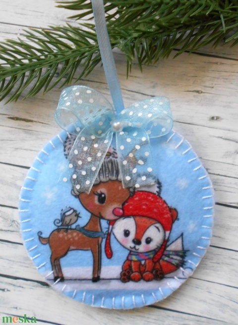 Cuki őzgidás-kisrókás kör alakú karácsonyfadísz