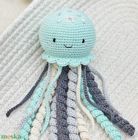 Horgolt NAGY menta polip minimál virághímzéssel