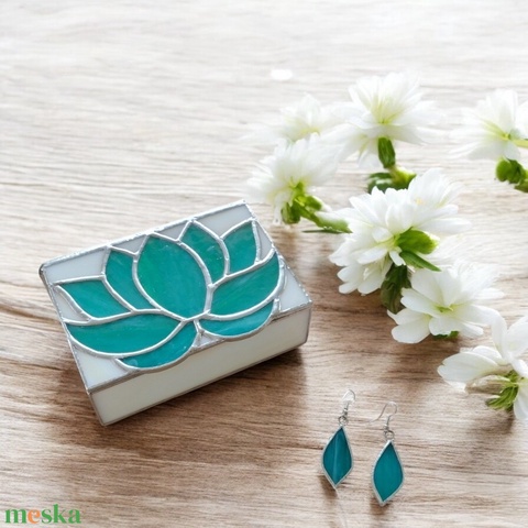 Ajándék szett: Fülbevaló+Ékszerdoboz - Türkiz lótuszvirág, Díva