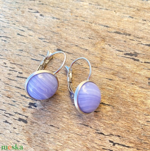 Lila csíkos achát ásvány fülbevaló 12mm-es nemesacél francia kapcsos alapon