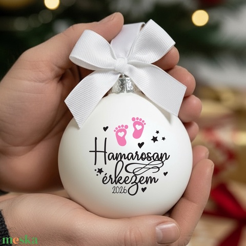 Hamarosan érkezem 2026 karácsonyi gömb - üveg karácsonyfa dísz - Rózsaszín