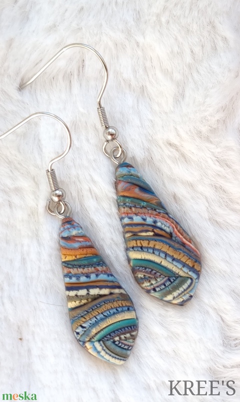 Kék-barna hullámok, ékszergyurma fülbevaló