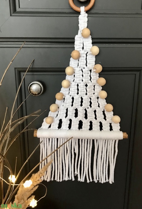 Karácsonyi ajtódísz fehér színű makramé zsinórfonalból