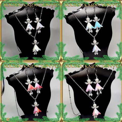 Ékszerek-szettek: karácsonyi angyalkás fülbevaló-medál-nyaklánc nemes acél/orvosi fém S-KA24-4