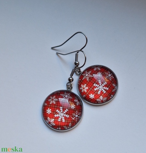 Piros hópehely fülbevaló Mikulás Karácsony
