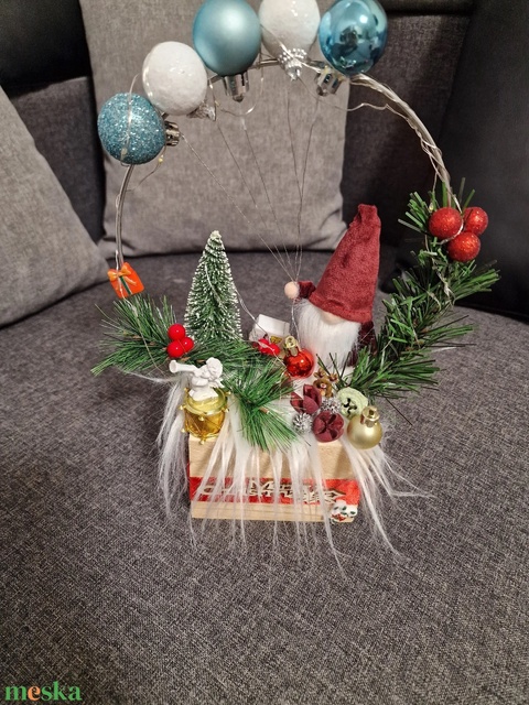 - Anyaga: fa, dekorációk, led, gömbök, fenyőág