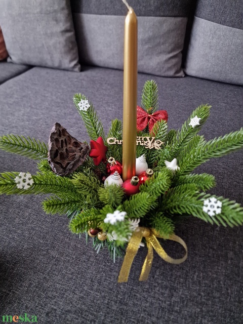 - Anyaga: gyertya, fenyőágak, dekorációk