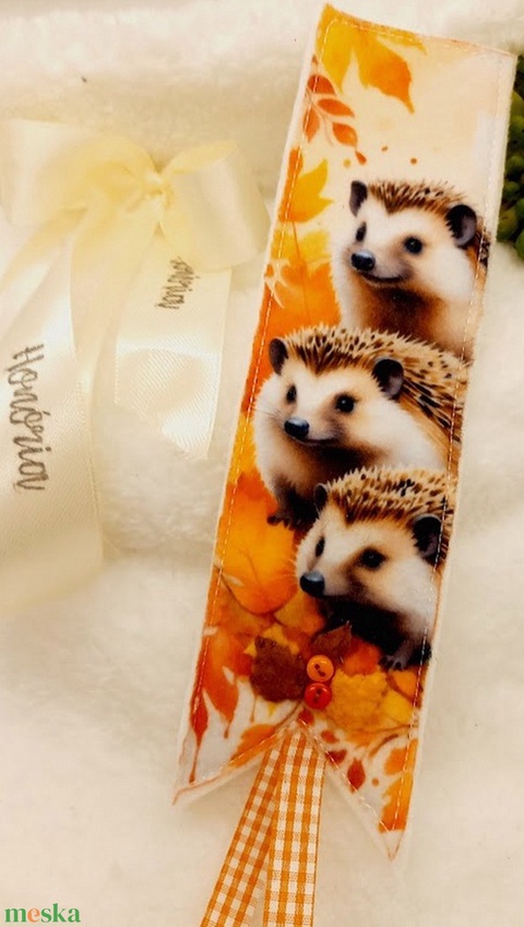 Őszi sünis könyvjelző-filcdísszel