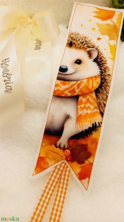 Őszi sünis könyvjelző-filcdísszel