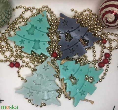 Viaszműves Illatos fenyő karácsonyfadísz csomag - kék-zöld