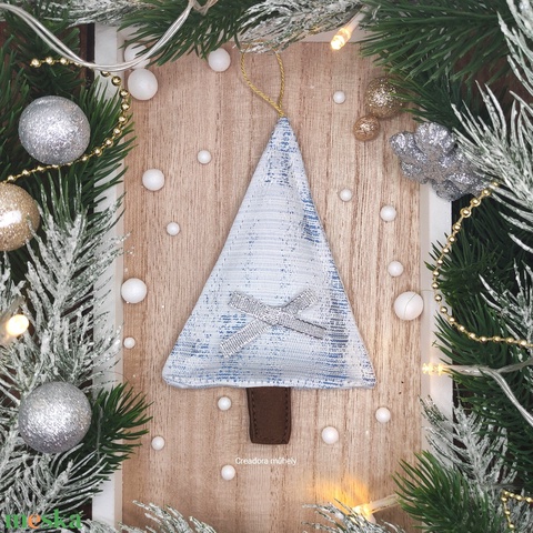 Karácsonyfa függő, textil fenyőfa, kék ezüst