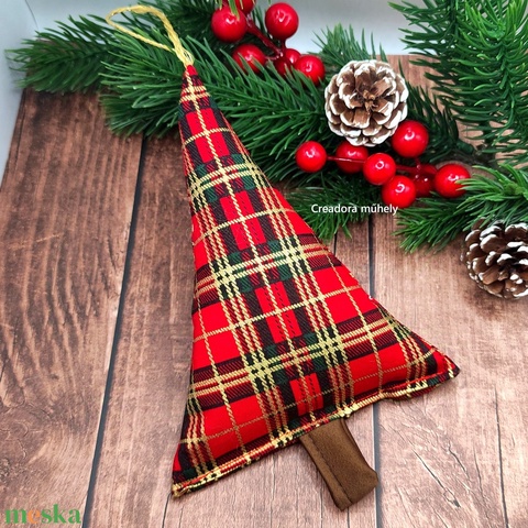 Textil fenyőfa, karácsonyfa piros-arany kockás