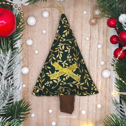 Karácsonyfa függő, textil fenyőfa függő díszzöld arany indás
