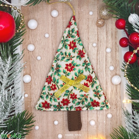 Karácsonyfa függő, textil fenyőfa, mikulásvirág