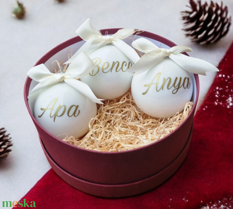 3db fehér 8cm üveggömb névvel feliratozva