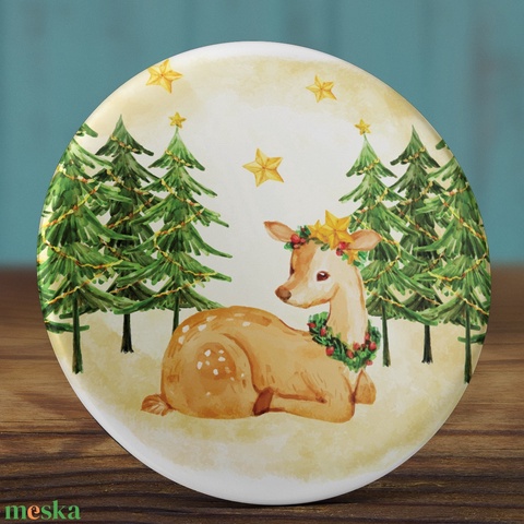 Karácsonyi mágnes - matrica - kitűző - zsebtükör - Szarvas - őz - karácsony - őzike - karácsony ajándék - karácsonyfa