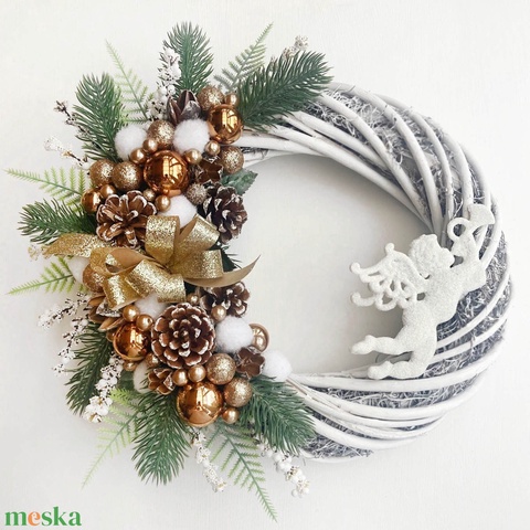 - Anyaga: koszorú alap, gömbök, műfenyő